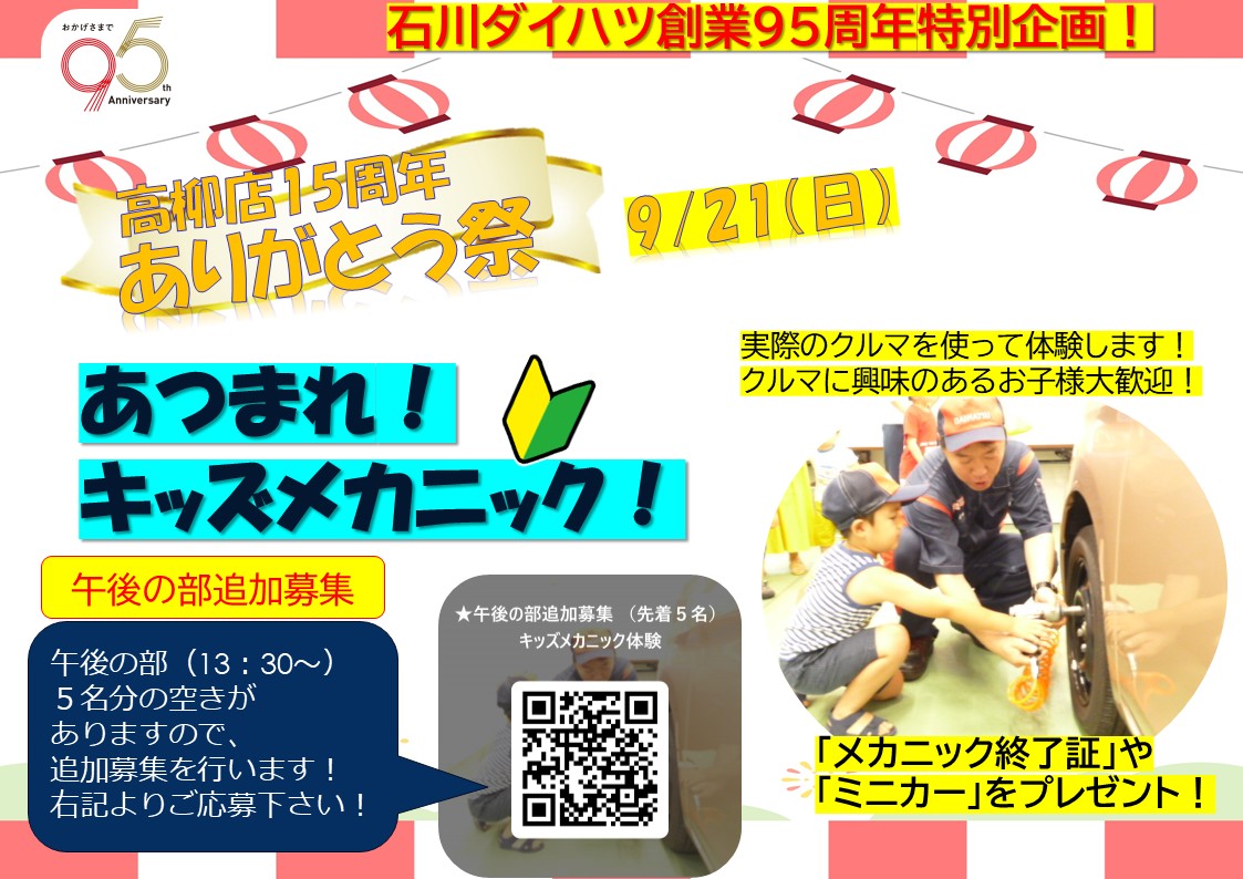 石川ダイハツはみなさまのおかげで95周年、