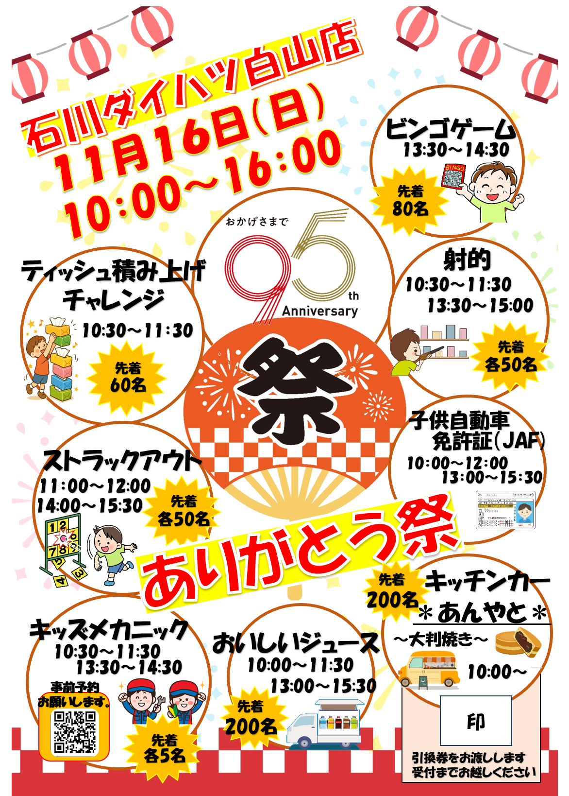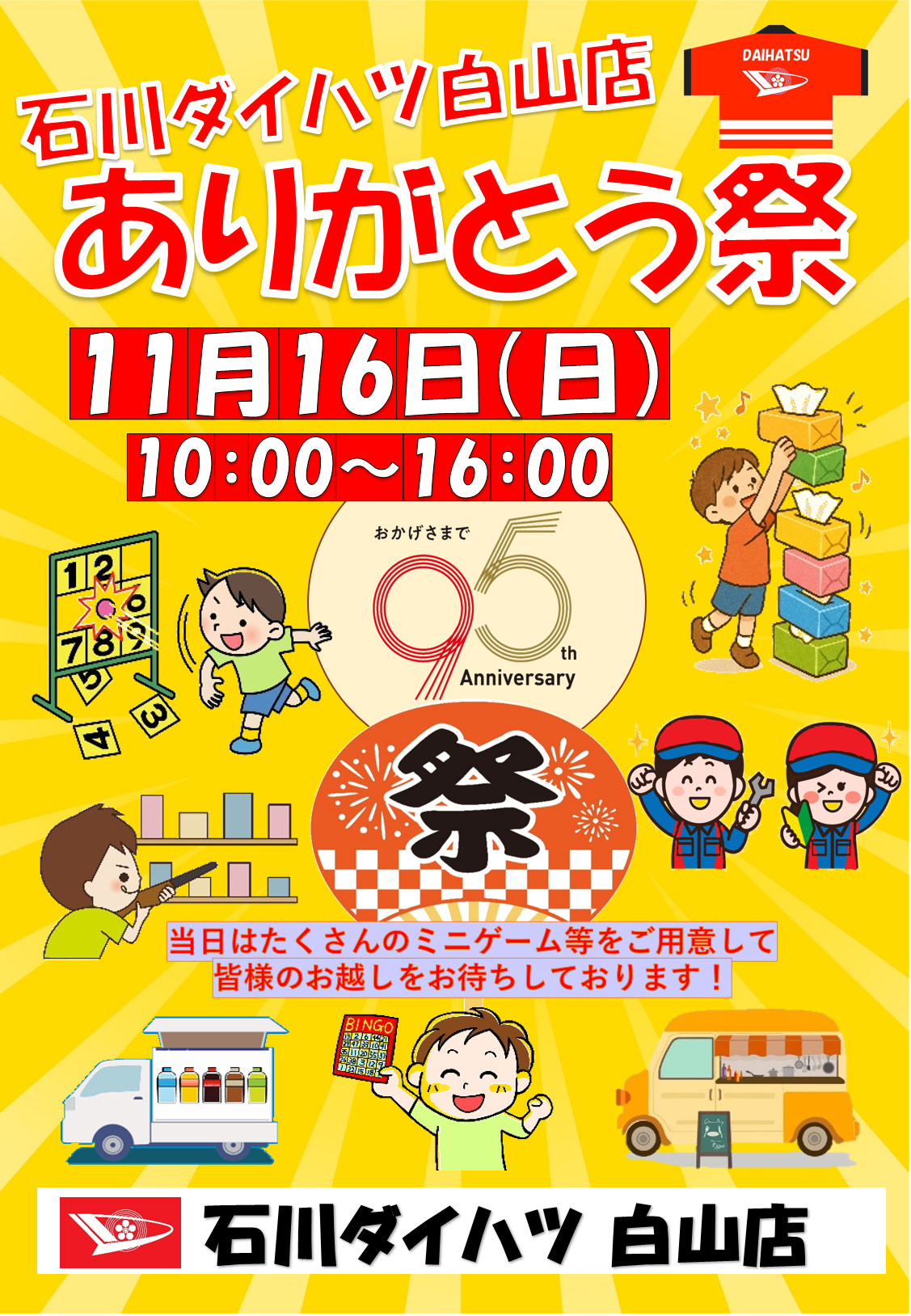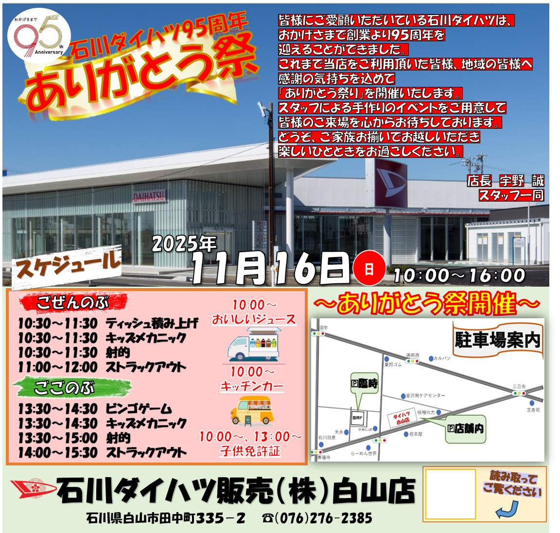 皆様にご愛顧いただいている石川ダイハツは、おかげさまで創業より95周年を迎えることができました。